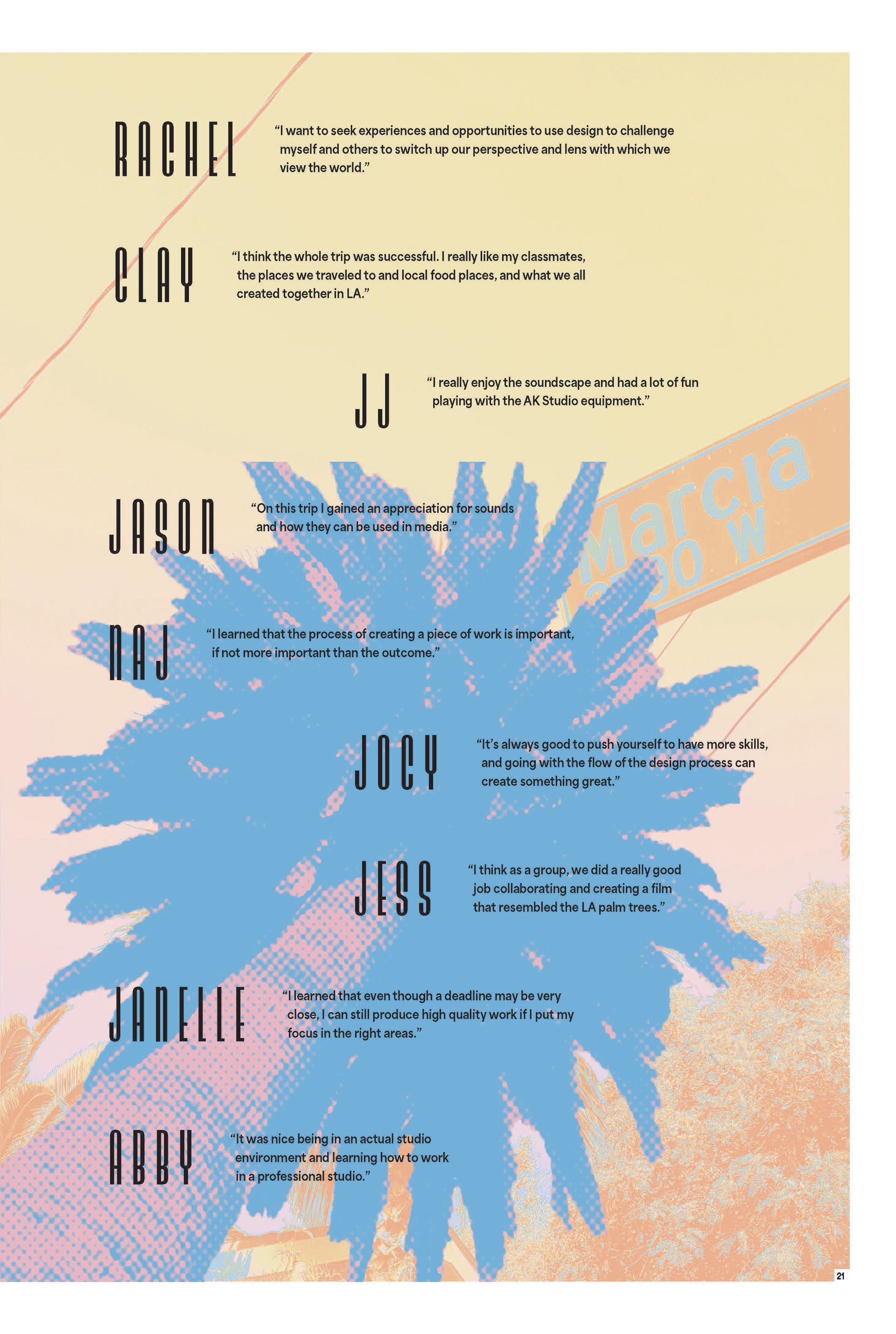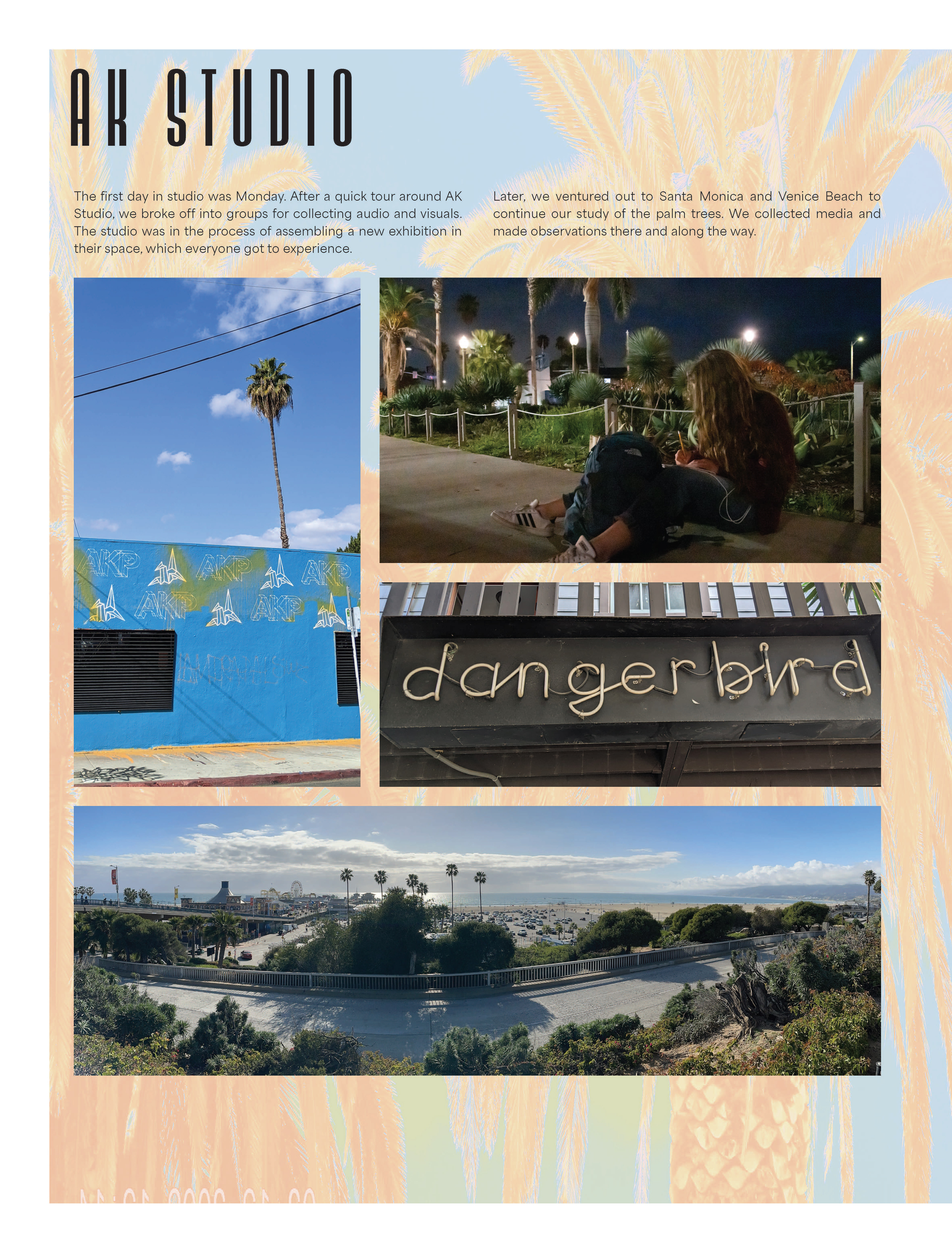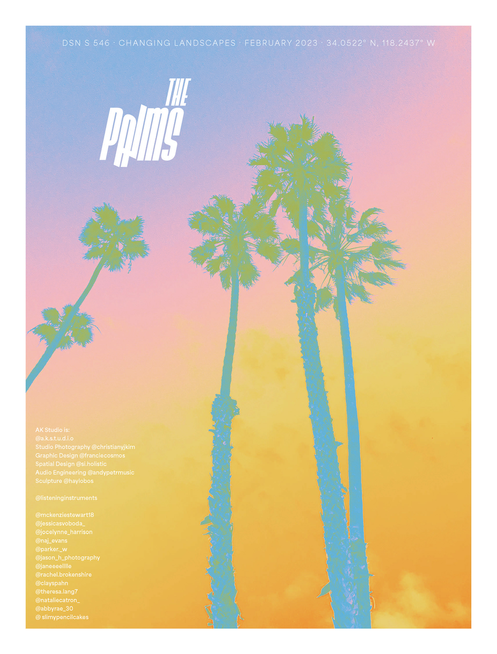 The Palms was a group project centered around a field trip to Los Angeles and the palm trees we encountered. The group took photos of our experience and put them together into publication for use to look back on our trip.