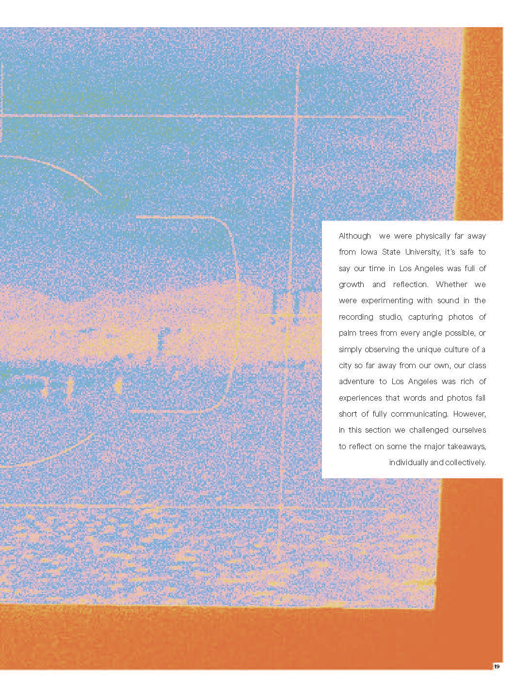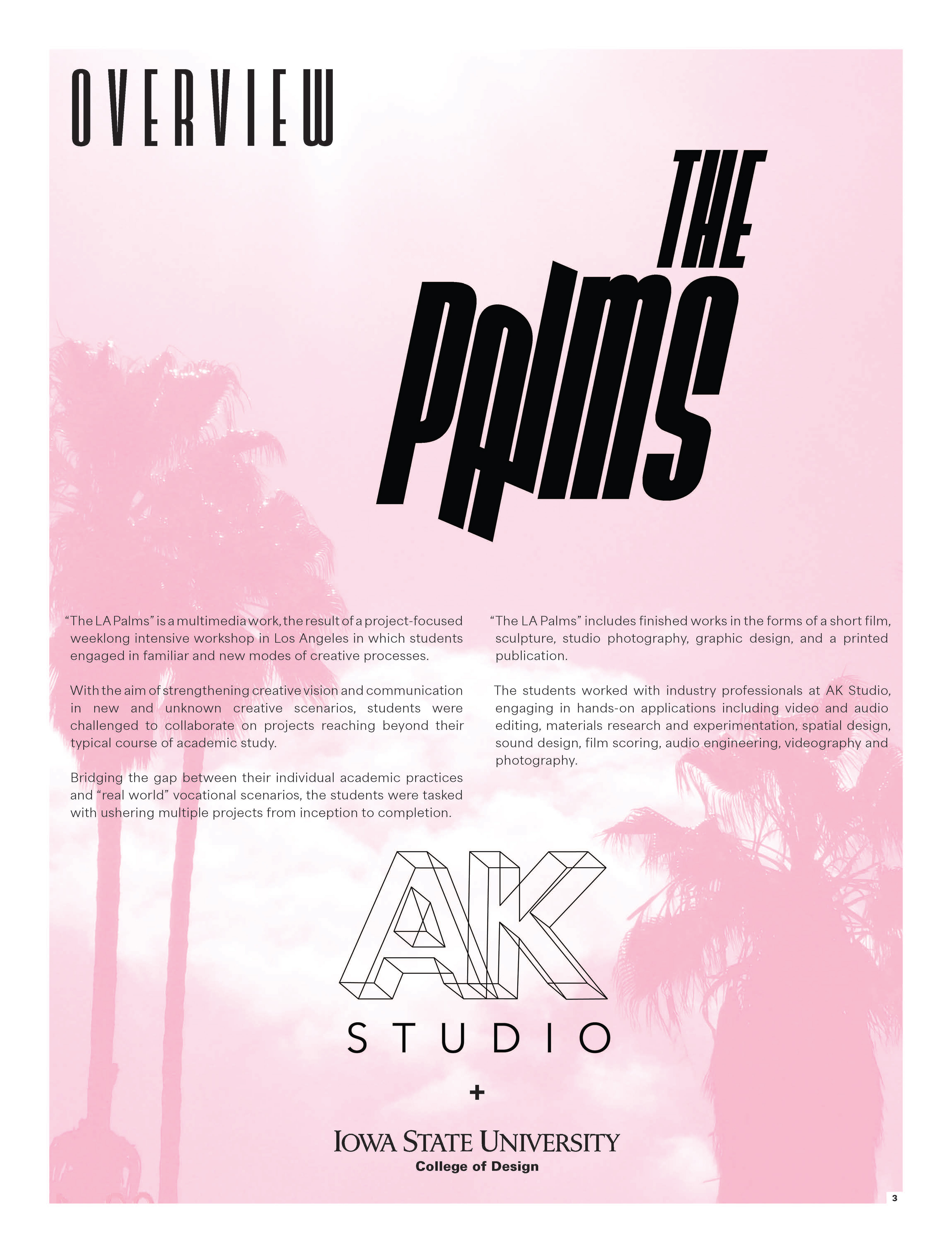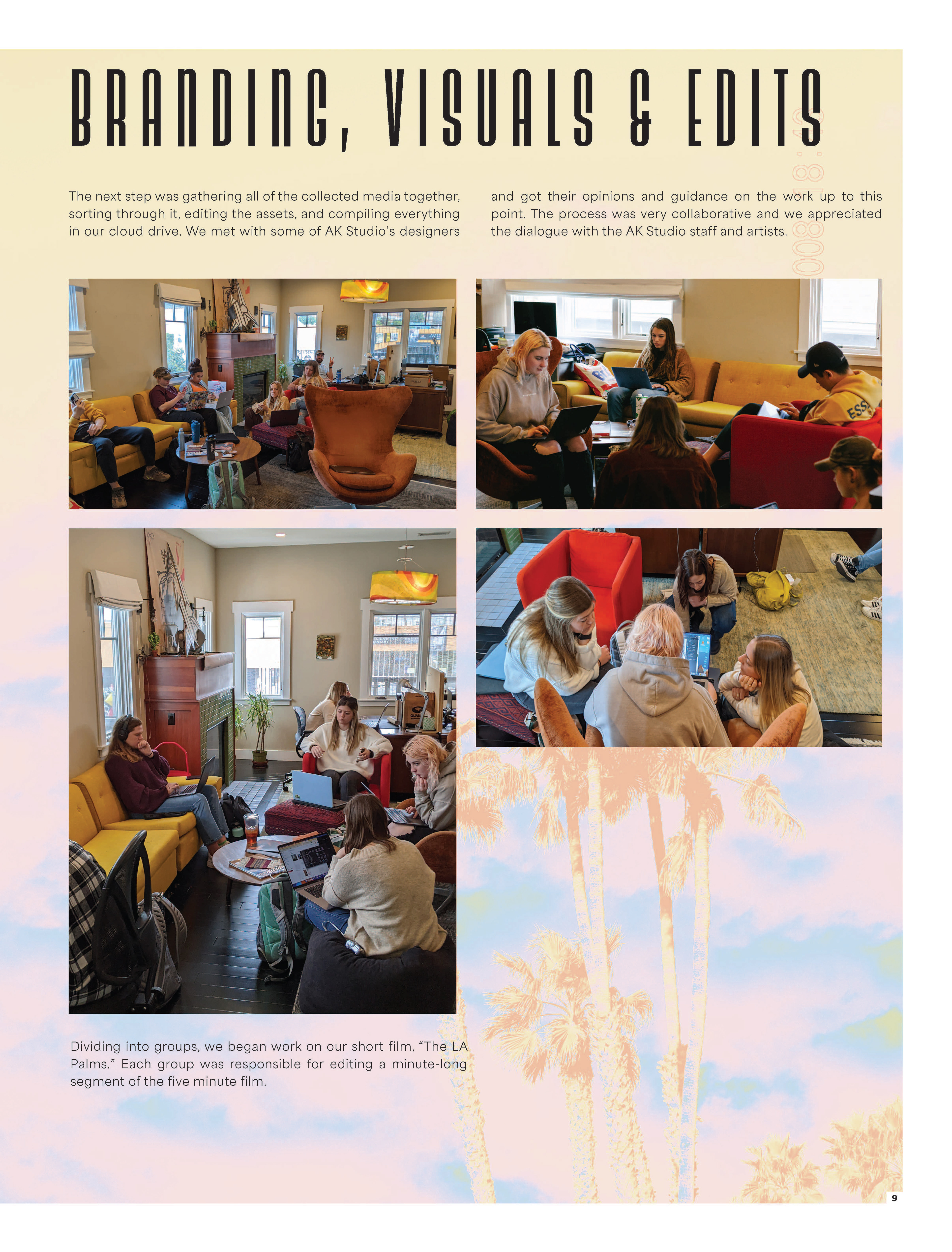 The Palms was a group project centered around a field trip to Los Angeles and the palm trees we encountered. The group took photos of our experience and put them together into publication for use to look back on our trip.
